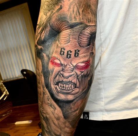 This design is very popular. As tattoo artist lee lopez burned 666 into velazquez’s arm, he learned about the man’s religious beliefs. See more ideas about tattoos, tattoos for guys, tattoo designs men. Some individuals associate the figure with the second coming of jesus christwho will come back to fight the apostates the belief and is marked with this number on the body.