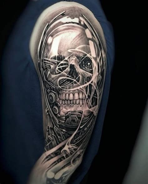 60 best biomechanical tattoos featuring gears, cogs, and metal rods Giger is credited with being the originator of the biomechanical art movement. The design looks marvellous and the tattoo is crafted on the person’s thighs lending a bold appearance. The design is the awesome combination of skull with mechanical parts. When blending the machines with anatomy, it makes.
