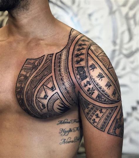 Browse 160 shoulder and chest tattoo designs stock photos and images available, or start a new search to explore more stock photos and images. You can simply base the design on the already existing arm tattoo. Most of you want to have attractive tattoos on the chest. Tribal shoulder tattoos are one of the most amazing examples of tribal tattoo.