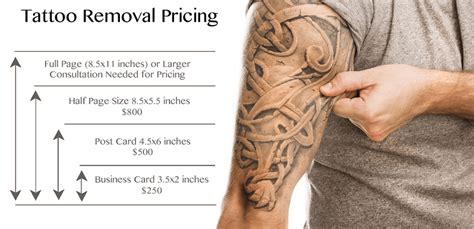 Most clinics will measure the height and width of your tattoo and either calculate the square inches, or compare it to a size categories chart. The larger the skin excision, the bigger your scar area. Tattoo removal costs may include: