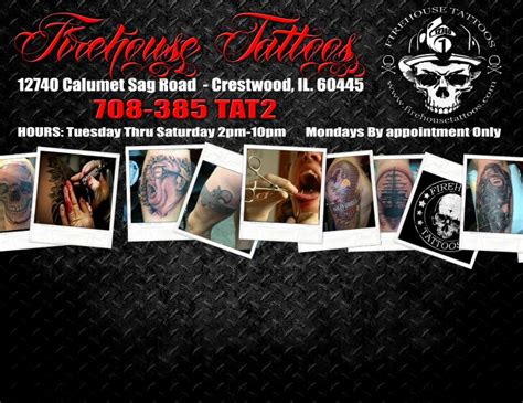Once that is completed, please wait in your vehicle for the artist to call you on your cell phone. To make your experience the best, you { the client } need to be as comfortable as possible during the tattoo procedure including any wait time leading up to said procedure. Get firehouse tattoos reviews, ratings, business hours, phone numbers, and directions. Firehouse tattoos is located at 12740 w cal sag rd, midlothian, il 60445.
