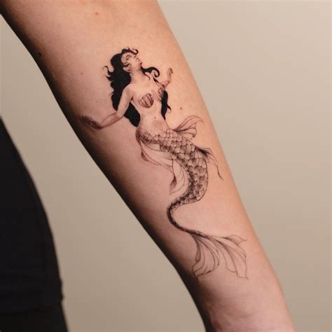 50+ most stunning mermaid tattoo designs 1. A unique mermaid tattoo that has curly thick hair. Attractive small mermaid tattoo on right back shoulder. $ 8.99 add to cart. They are usually striking cute and playful poses and wear classy makeup.