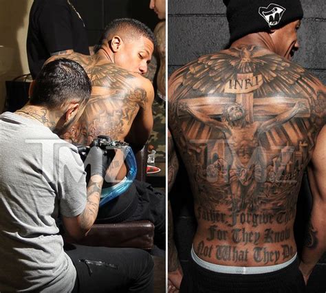 Nick Cannon Back Tattoo, In this photo the back tattoo was just started. Nick cannon, tattoo detail, visits extra at their new york studios at h&m in times square on june 8, 2016 in new york city.