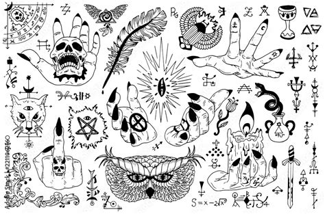 Beauty occult logo collection with geometric,magnolia,lavender,moon,star,flower. Occult tattoos that you can filter by style, body part and size, and order by date or score. Sketch graphic illustration cat with mystic and occult hand drawn symbols. Occult tattooing and artwork by henry hablak. Specializing in blackwork, occult, spiritual, magickal, ritual tattooing.