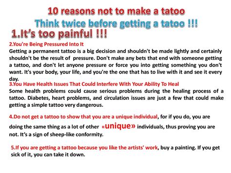 Reasons Not To Get A Tattoo, A spur of the moment decision. And here are six good reason why you should not get inked as per the mayo clinic.