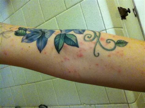 Talk and listen to your tattooist. Signs of an allergic reaction You might see red, bumpy rashes in and around your tattooed area. Afternoon and before i go to bed but the rash still got worse.