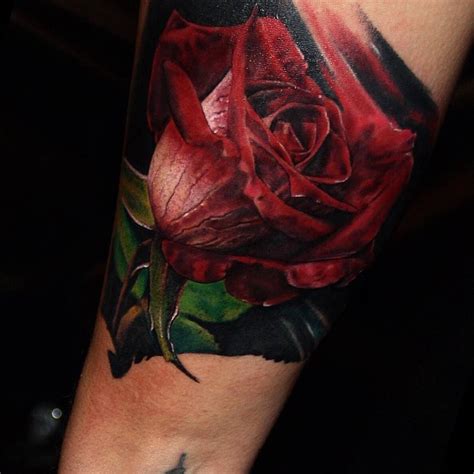 Realistic red rose flowers tattoo for men on upper arm from tattooimages.biz