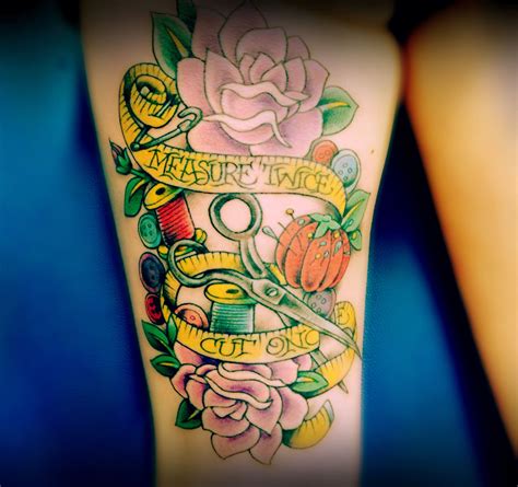 Use pattern transfer paper to. The scissors, first of all, mean my passion (sewing) with the c (blue ribbon) the bond that unites me to this passion (my great grandmother and mother were making creations, my great grandmother was tailor in the 50s and 60s) and roses represent life and death. I would love to post this sewing tattoo picture.