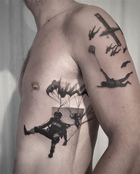 Skydivers jumping from a plane, b&g realism piece done on guy’s shoulder. See more ideas about skydiving, tattoos, paragliding. The surefire machine guitarist jumped out of a plane flying at 11,000 feet.