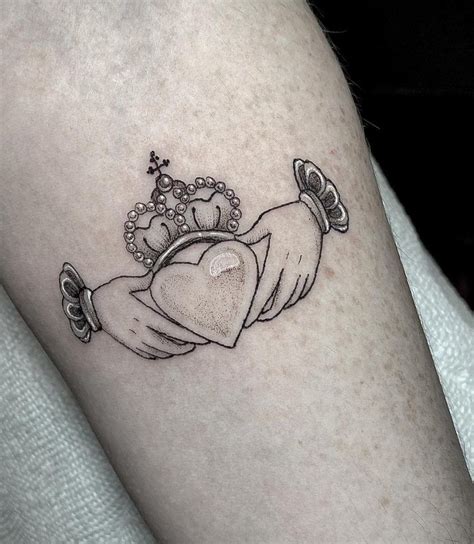 Small black claddagh ring tattoo @tattoosbyeo Because it is such a succinct image, this kind of ink can come in any size. Clover leaf in celtic claddagh tattoo design. This claddagh tattoo design will take you less than two hours to achieve. Claddagh with clover leaves tattoo design for foot.