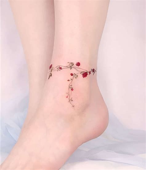 Crosses and other religious symbols are also popularly used. A charm bracelet is usually a solid piece of metal wrapped around your hand to which you can keep joining smaller charms. An adorable ankle rose tattoo of a girl. Small icons such as a heart, musical note or butterfly are other popular. The anklet can be drawn with a single.