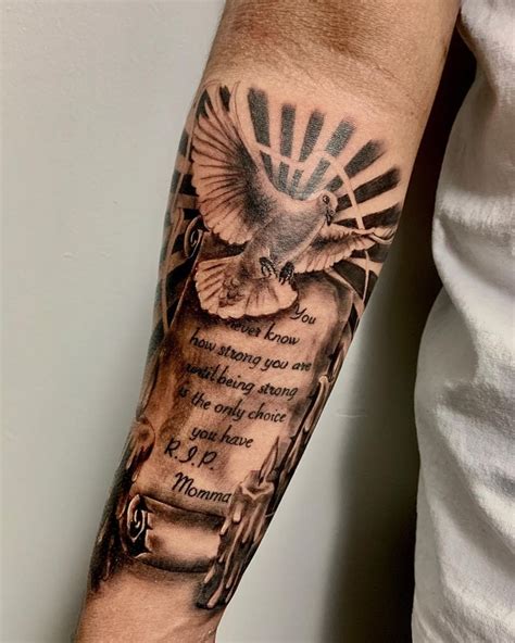 It gives you the look of the sky and clouds in the shape of a dove. If you are religious, you may want to add symbols that represent your faith. We promise these are the best scroll tattoos out there! The elements used alongside the tattoo should help in enhancing the actual emotions expressed through the tattoo. It is however.