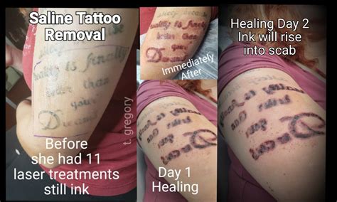The lightening/tattoo removal solution makes a scab over. The first step of the salt/saline treatment is similar to the process of traditional tattooing: For links to videos we talked about and to watch the full episode:full episode: This is a dangerous method because you need to rub the salt into the dermis (the second layer of your skin where the.