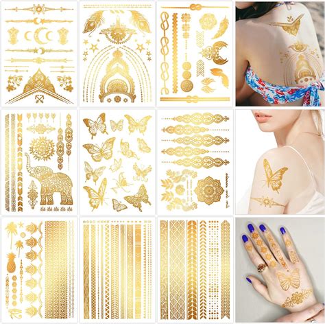 I love thinking of creatives ways where to locate on my body which tattoo. We invite you to come on over to our facebook page and like us for more updates and specials. These fun gold and silver temporary tattoo designs (bracelets, necklace, lettering) have hints of dark blue and turquoise. Size is 8 x 6.5 inches. We provide the.