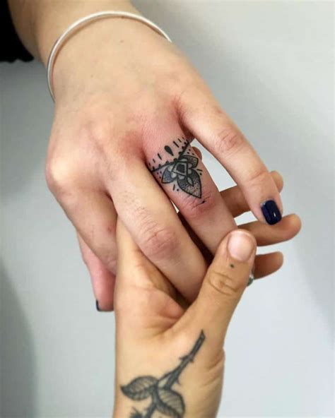 There are literally no limits when it comes to sporting facial firepower! A romantic heart arrow wedding ring tattoos that is finishing on your partner's finger. The wedding ring is a symbol of a covenant and commitment between two people. Inspired by the lines of tribal tattoos, this handcrafted wedding band is made with accent black diamonds. Wedding ring tattoos.