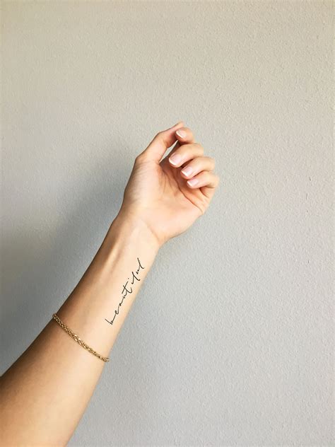 Exaggerated loops in the s and g give a little character to this dainty wrist tattoo. Love tattoo on the wrist. You can even customize your own design. Minimalist script with one word. From words, to quotes, to script, to roman numerals, and beyond, these tattoo ideas combine elegance with meaning in.